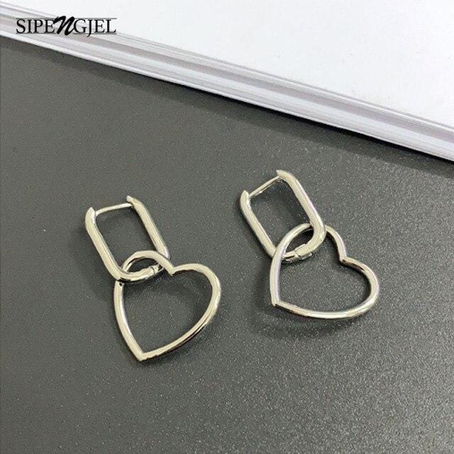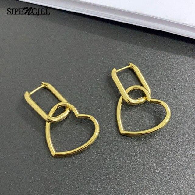 SIPENGJEL Fashion Gold Silver Color Exaggerated Geometry Heart Earrings Smooth Punk Large Hoop Earrings For Women Jewelry
