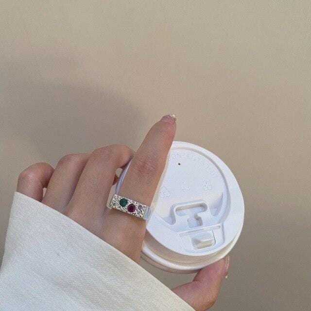 SIPENGJEL Fashion Heart Love Ring Pink Rectangle Green Star Zircon Inlaid Opening Rings For Women Jewelry