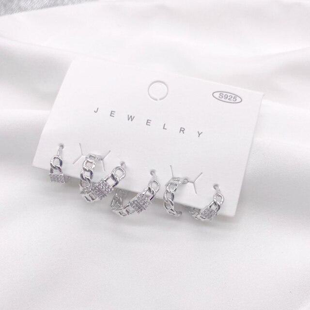 SIPENGJEL Fashion Inlaid Zircon Dainty Geometric Link Chain Stud Earrings Sets 6 Pcs Punk Sets Earrings For Women Jewelry 2021