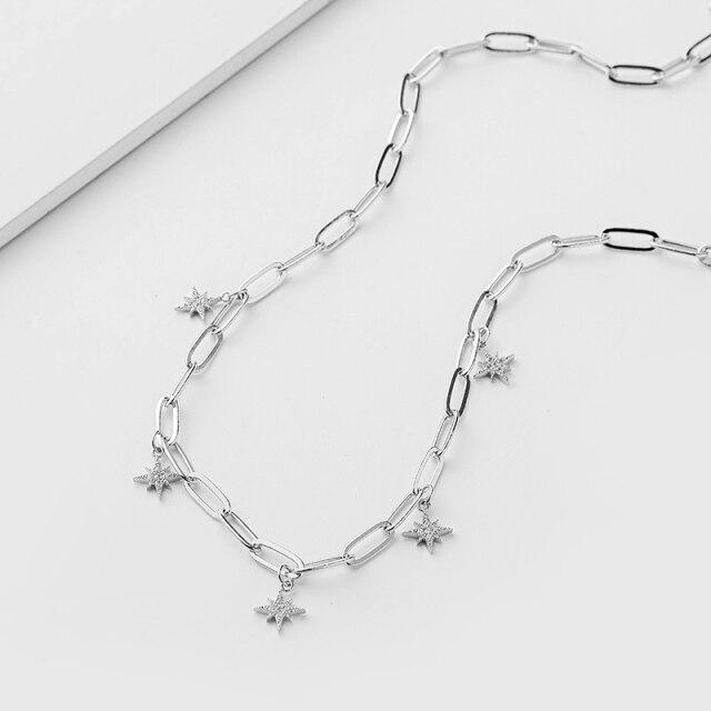 SIPENGJEL Fashion Inlaid Zircon Stars Pendant Necklace Geometric Link Chain Hip Hop Necklace For Women Girls Punk Jewelry 2021