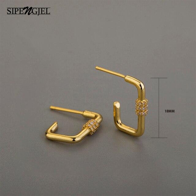 SIPENGJEL Fashion Metal Geometric Stud Earrings Hip Hop Creativity Simple Circle Hoopp Earrings For Women Girls Gift Jewelry
