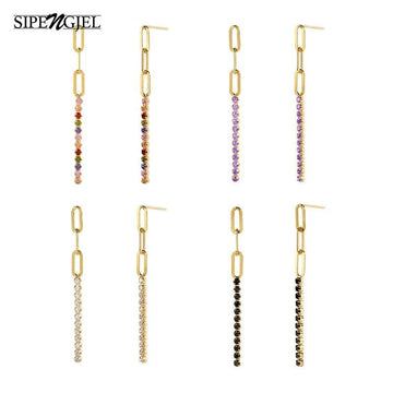 SIPENGJEL Fashion Simple Bling Zircon Long Tassel Stud Earrings Inlaid Zircon Dainty Piercing Earrings For Women Jewelry 2021