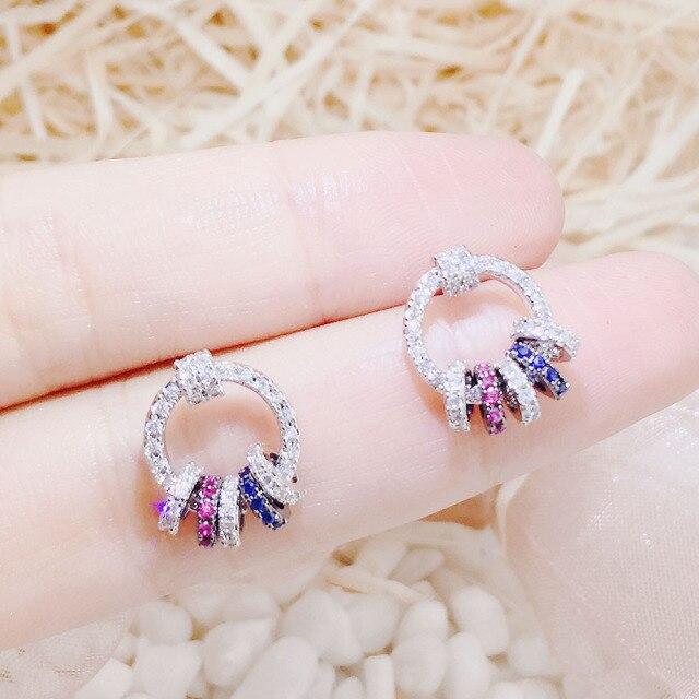 SIPENGJEL Fashion Simple Small Round Geometric Earrings Rainbow Crystal Stud Earrings For Women Korean Jewelry 2021
