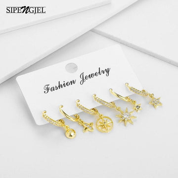 SIPENGJEL Fashion Small Star Hoop Huggie Earrings Sets Korean Style Dangle Drop Earrings For Women Jewelry Accessories 2021