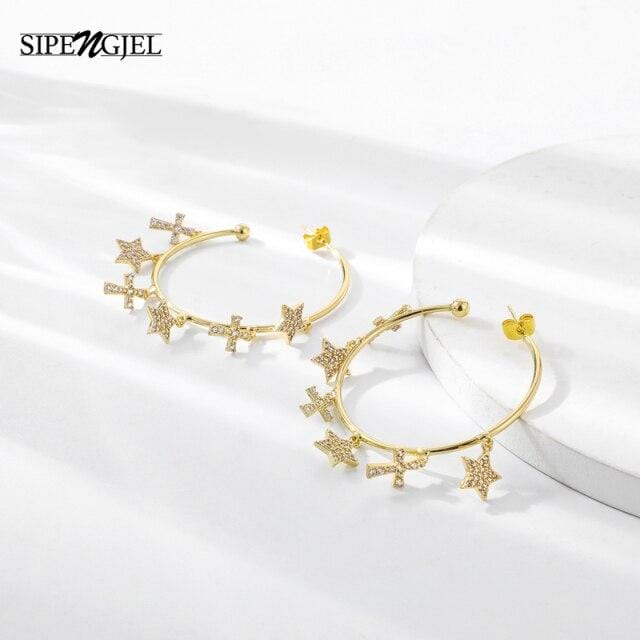 SIPENGJEL Fashion Star Cross Dangle Earrings Geometric Circle Hoop Earrings For Women Accessories Jewelry 2021