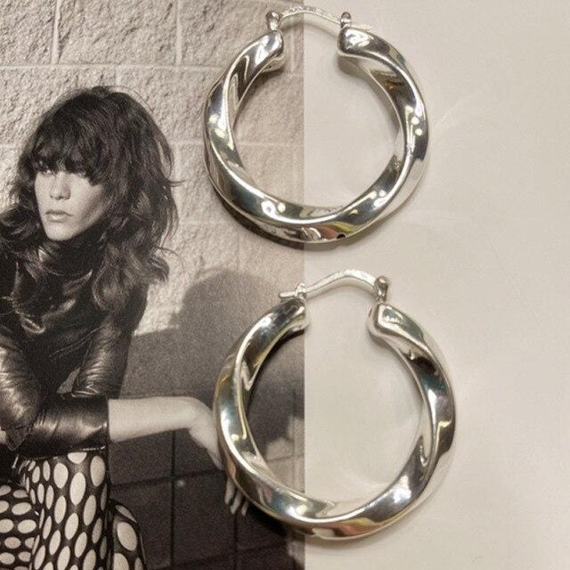 SIPENGJEL Fashion Wave Twist Big Circle Hoop Earrring Geometric Bright All-match Handmade Earrings For Women Gift Accessories
