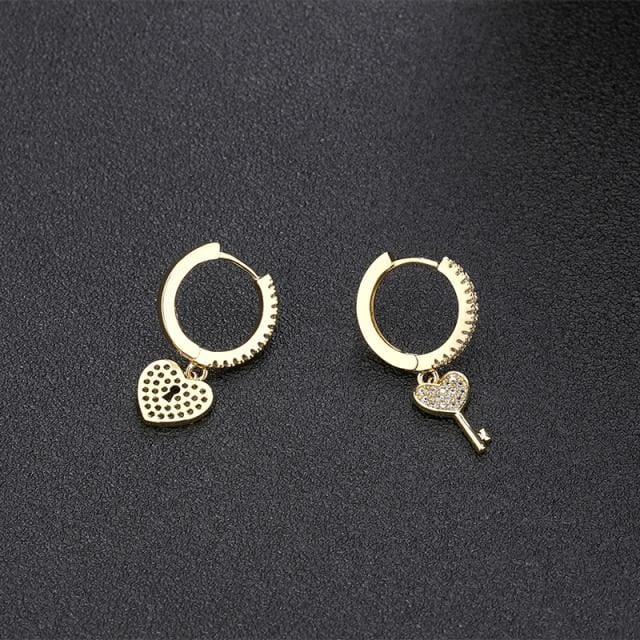 SIPENGJEL Geometric Love Heart Dangle Hoop Earrings Punk Lock Key Asymmetry Pendant Earrings For Women Jewelry Gift 2021 aros