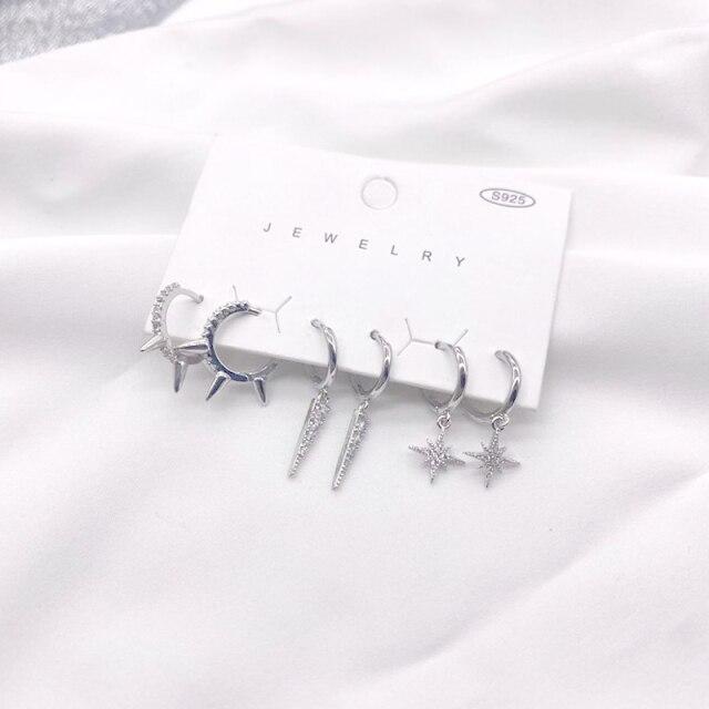 SIPENGJEL Hot Sell New Zircon Star Small Hoop Earrings Sets For Women 6-piece Dangle Drop Earrings Jewelry Gift 2021 aros