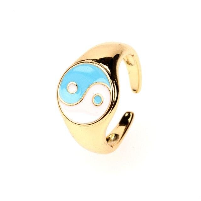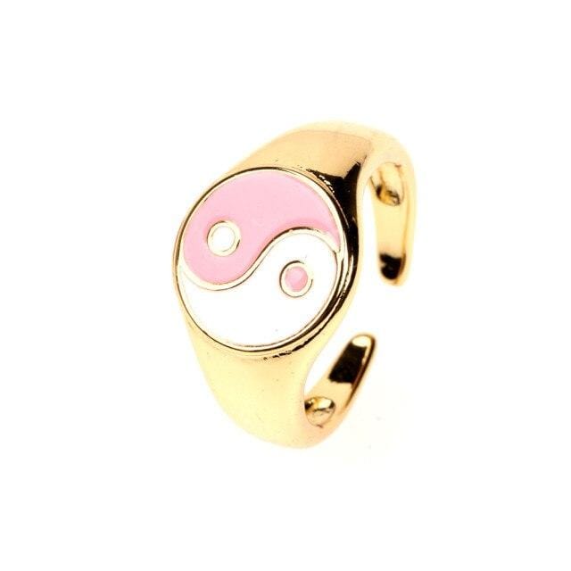 SIPENGJEL Love Ring For Women Yin Yang Rings For Girls Leisure Afternoon Tea Accessories Metal Rings Jewelry Gift