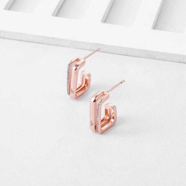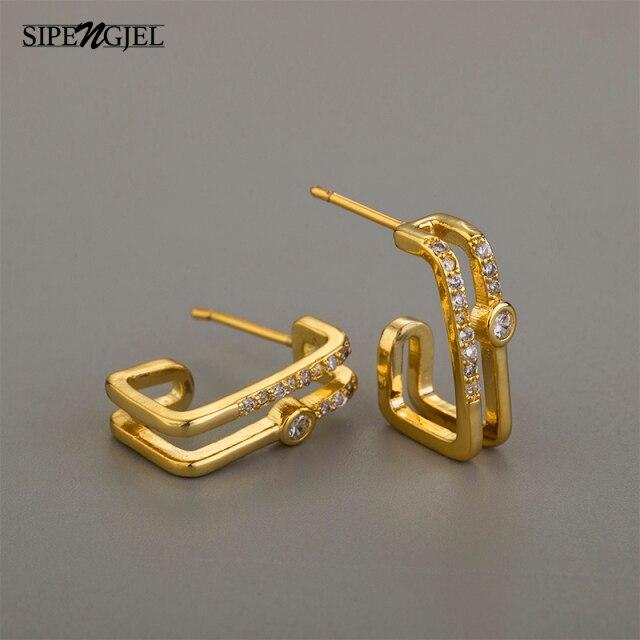 SIPENGJEL Metal Irregular Geometric Square Stud Earrings Hip Hop Personality Crystal Earrings For Women Party Jewelry 2021