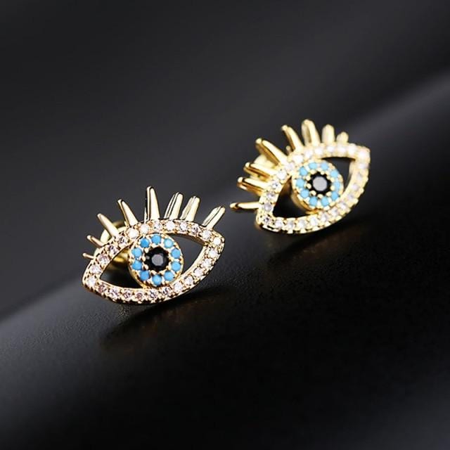 SIPENGJEL Mini Blue Zircon Turkish Eye Stud Earrings Gold Silver Color Eye Shape Piercing Earrings For Women Jewelry Gift 2021