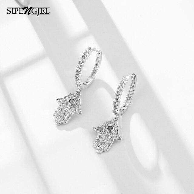 SIPENGJEL New Brilliant Crystal Zircon Fine Hand Hoop Earrings simple Elegant Piercing Earrings For Women Temperament Jewelry
