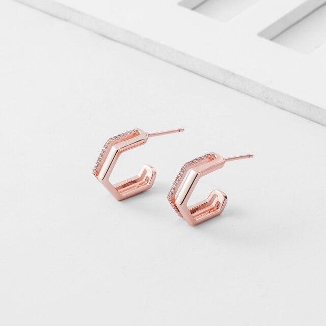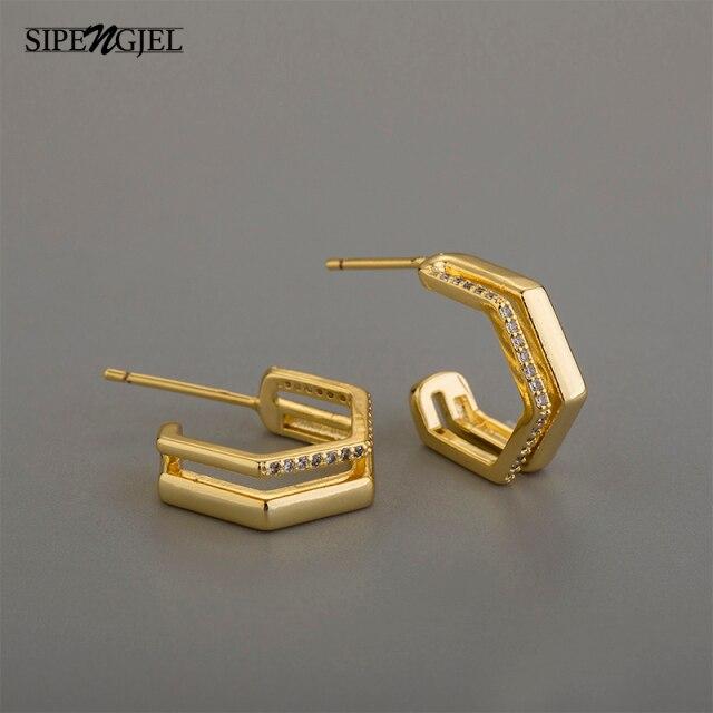 SIPENGJEL New Gold Silver Color Double layer Metal Geometric Square Stud Earrings Polygon Metal Earrings For Women Travel Jewell