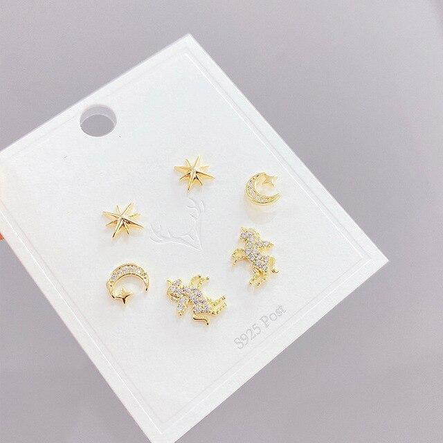 SIPENGJEL New Trendy Cute Star And Moon Stud Earrings Sets Simple Animal Unicorn 6 Pcs Earrings For Women Fashion Jewelry