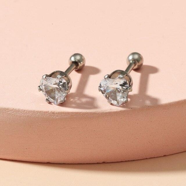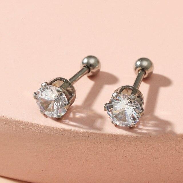 SIPENGJEL Stainless Steel Crystal Zircon Ear Piercing Earrngs Cartilage Helix Ear Buckle Earrings For Women Man Piercing Jewelry