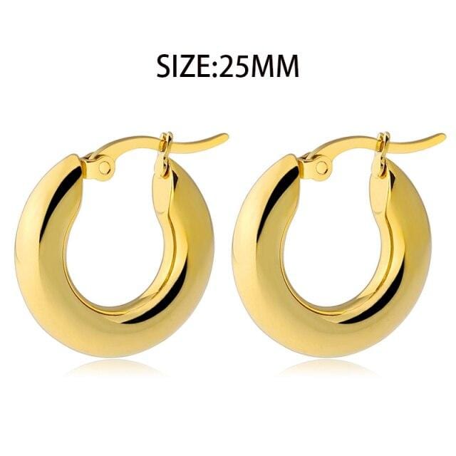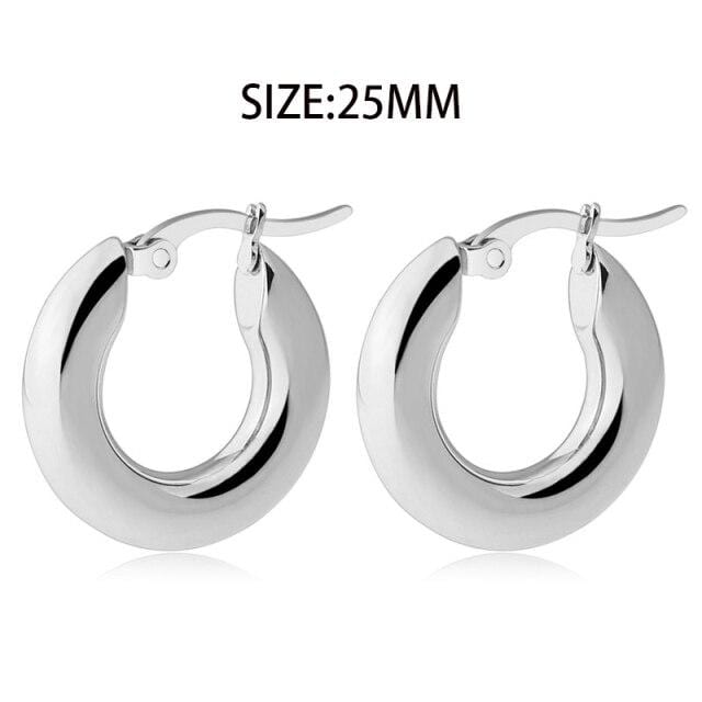 SIPENGJEL Stainless Steel Round Smooth Thick Circle Hoop Earrings For Women Personality Metal Punk Geometric Earrings Jewelry