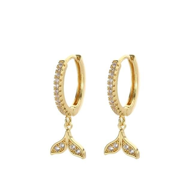 SIPENGJEL Trendy Cubic Zircon Fish Tail Earrings Gold Hoop Earrings For Women Wedding Jewelry 2021