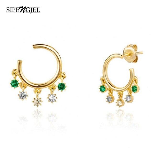 SIPENGJEL Trendy Cubic Zircon Geometric Round Stud Earrings Green Crystal Tassel Earrings For Women Korean Jewelry