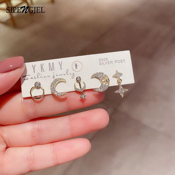 SIPENGJEL Trendy Sterling Silver 925 Needle Moon Stud Earrings Sets For Women Circle Star Piercing Earrings Jewelry 2021