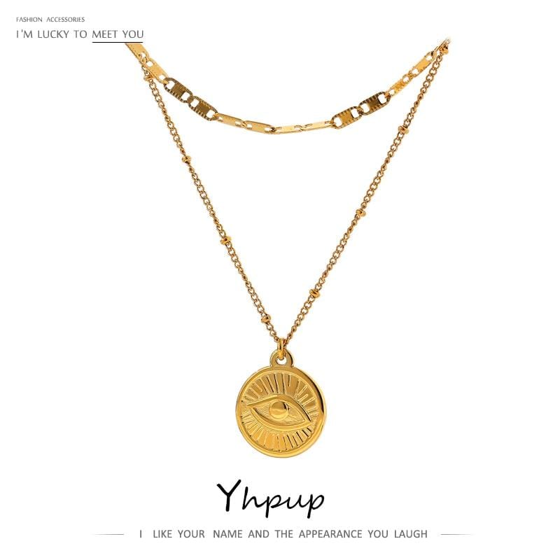 Yhpup Trendy Eye Pendant Layered Chain Necklace Titanium Steel Jewelry 2021 Stainless Steel Charm Collar Necklace for Women
