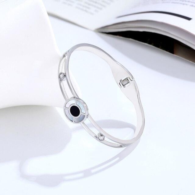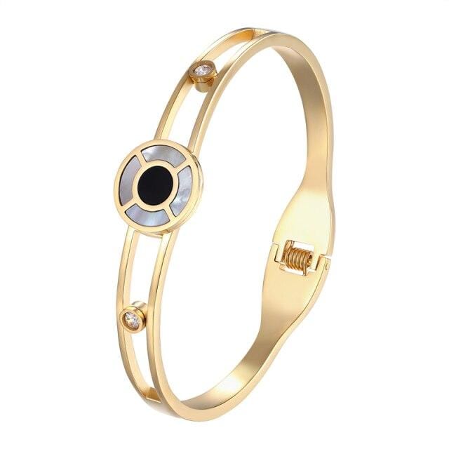 Beautiful 4 Shells Middle Black Enamel Bracelets & Bangle For Women Stainless Steel Spring Open Zircon Bracelet Couple Gift