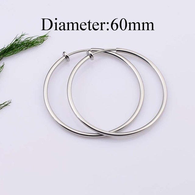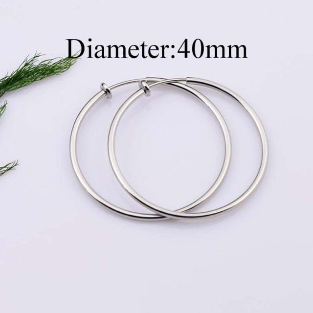 Hot diameter 4cm/5cm/6cm Ear Clips Rings Punk Women Non-Pierced Hoop Earrings Spring Goth Fake Clip-On Circle Earrings