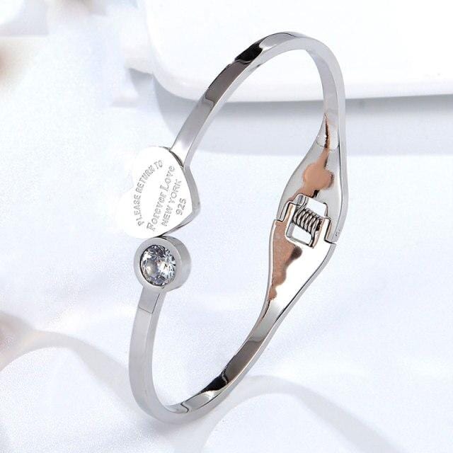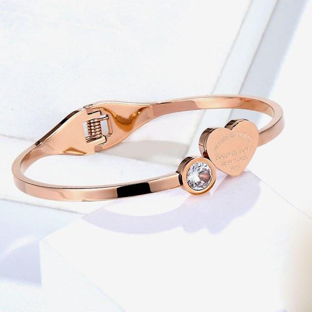 Open Spring Bangle Crystal And Engraving Forever Love Heart Brand Bangle For Women High Quality Titanium Steel Jewelry For Gift