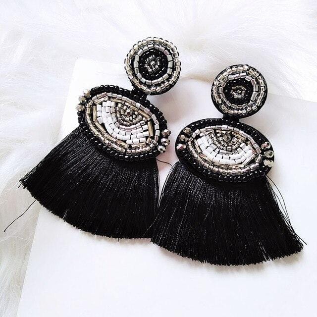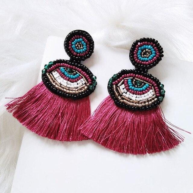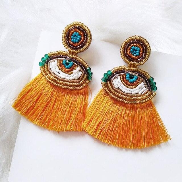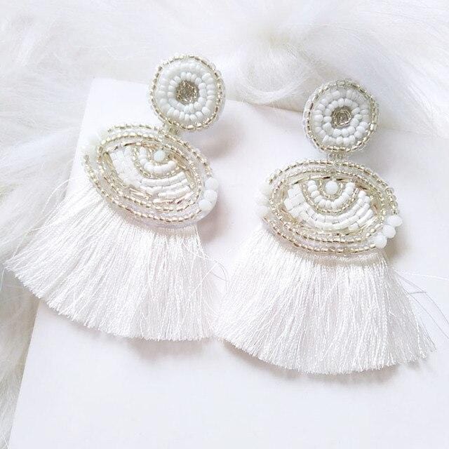Ztech Spring Style Bohemian Tassel Long Drop Earrings for Women Cotton Silk Fabric Fringe Earrings 2020 Fashion Woman Jewelry