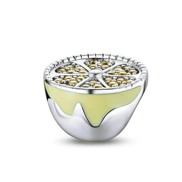 bamoer 2021 Summer Holiday Happy Hour 925 Sterling Silver Green Enamel Cactus and Lemon Beads Charm for Original Silver Bracelet