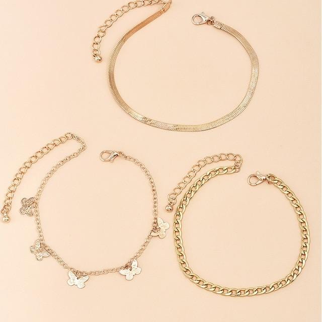Boho Anklet Foot Geometry Chain Ankle Summer Bracelet Butterfly Pendant Charm Sandals Barefoot Beach Foot Bridal Jewelry A028