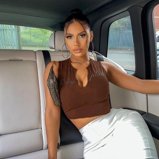 Cryptographic Diamond Letters Summer Crop Tops V-Neck Sleeveless Sexy Top Tees Slim Short Cropped Feminino Tops Chic Streetwear