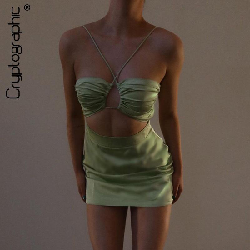 Cryptographic Fashion Summer Halter Sexy Backless Mini Dress Holiday Elegant Skinny Sleeveless Club Party Dresses Bodycon