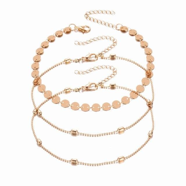 FNIO Two Layers Chain Heart Style Gold/Silver Color Anklets For Women Bracelets Summer Barefoot Sandals Jewelry On Foot Leg Chai