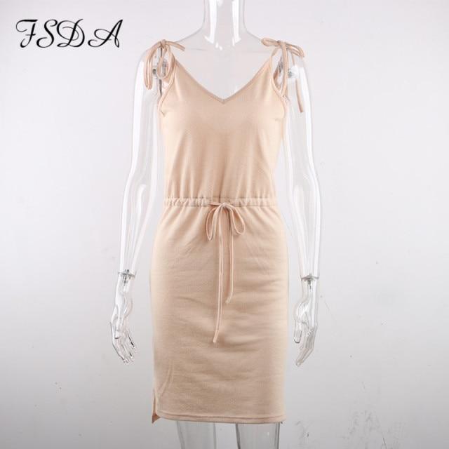 FSDA Mini Casual Dress Backless Solid Slit Wrap Deep V Neck Sashes Spaghetti Strap Sleeveless Sundress Summer Dress Beach Women