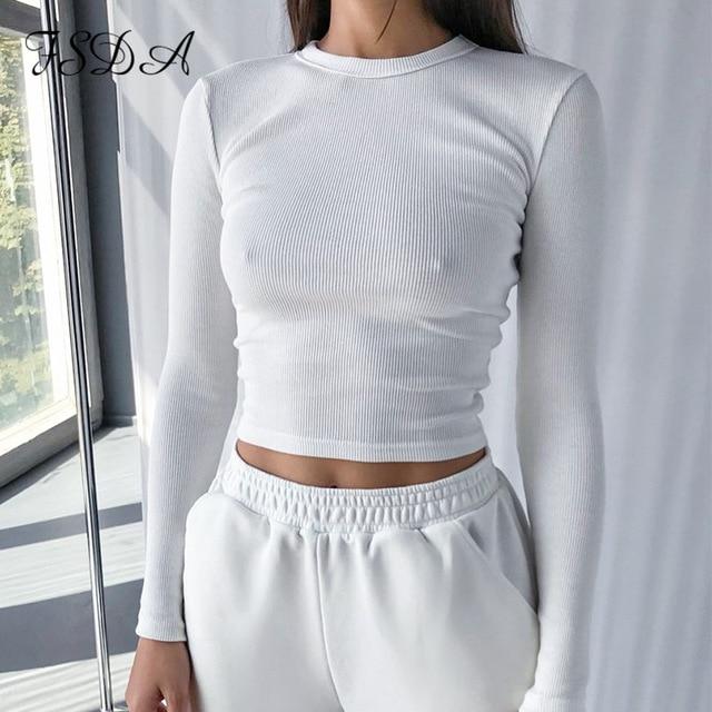 FSDA O Neck Knit White Crop Top Women Summer Casual T Shirt Basic Sexy Streetwear Ribber Black Short Sleeve Tops