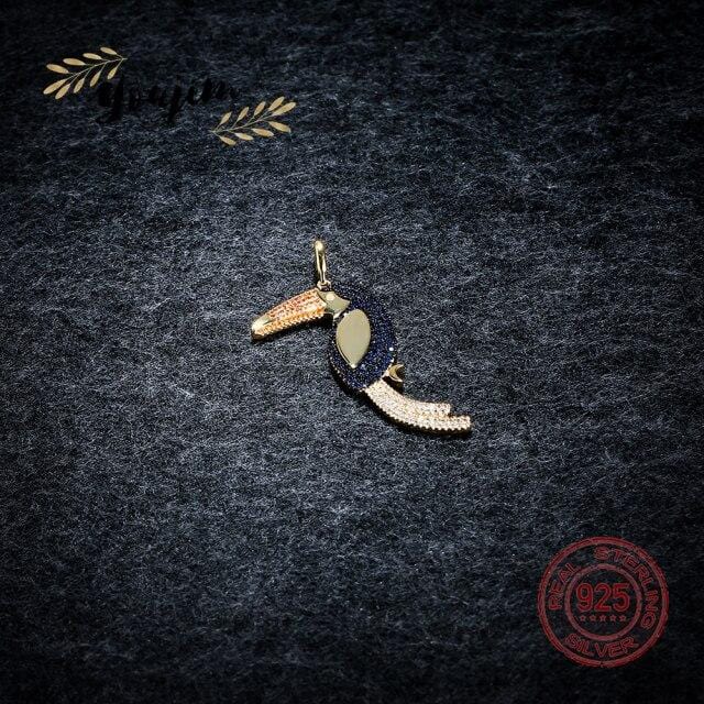 New Light Luxury Women Woodpecker Coconut Zircon 925 Silver Pendant Summer Fashion Monaco Exquisite Jewelry Gift