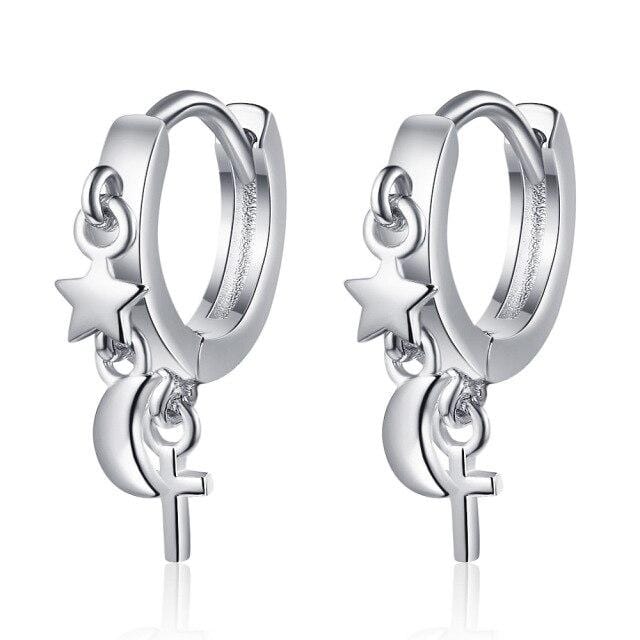 ROXI Copper Bohemia Hoop Earrings for Women Girls Summer Jewelry Earring Moon Croos Brincos Irregular Long Chain Huggie Earring