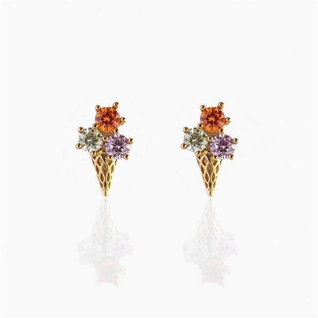 ROXI Copper Lovely Candy Bear Crown Colorful Crystals Stud Earrings for Women Girls Summer Jewelry Earrings Butterfly Stars Ins