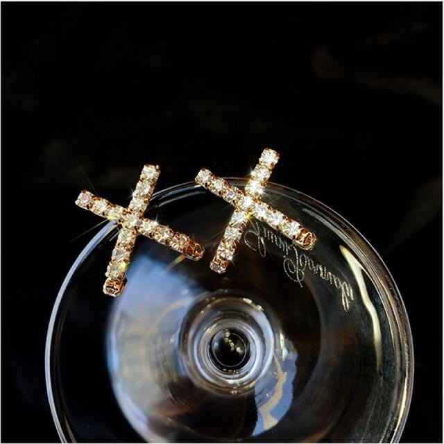 2020 new fashion geometric elements shining cross x Earrings European and American parties sexy Earrings female jewelry