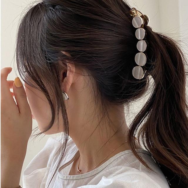 Temperament Korean word clip headdress ins pearl banana clip vertical clip ponytail hairpin simple style hair accessories