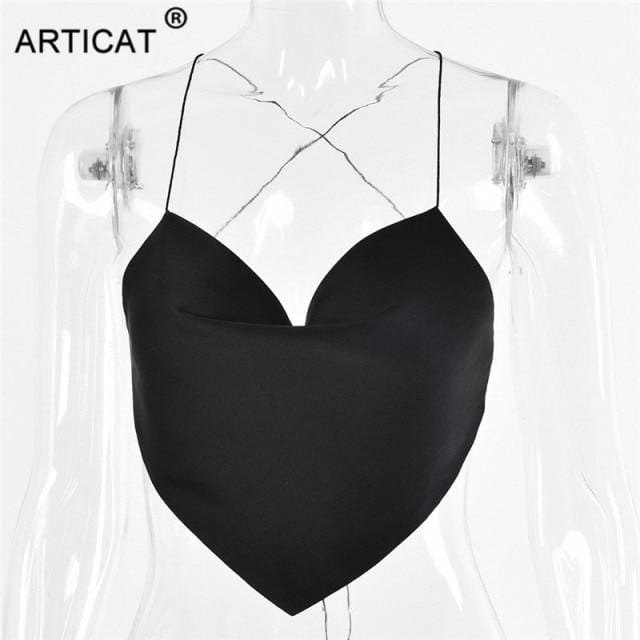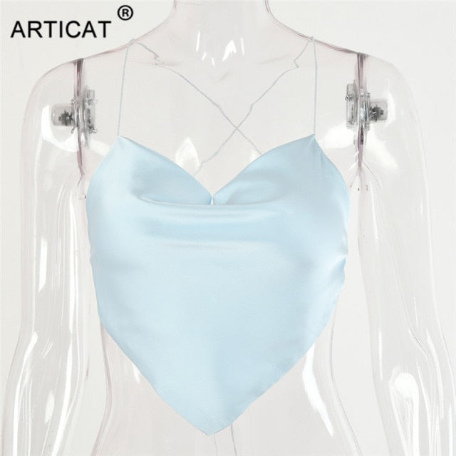 Articat Solid Satin Backless Tank Tops For Women Sexy Clubwear Crop Top Female Slim Bandage Bustier Short Casual Vest Ladies