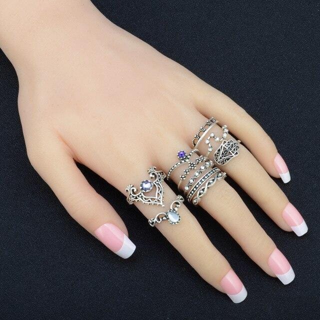 10 Pcs/set Fashion retro Bohemian Spiral Gem Finger Knuckle Rings Jewelry Gift