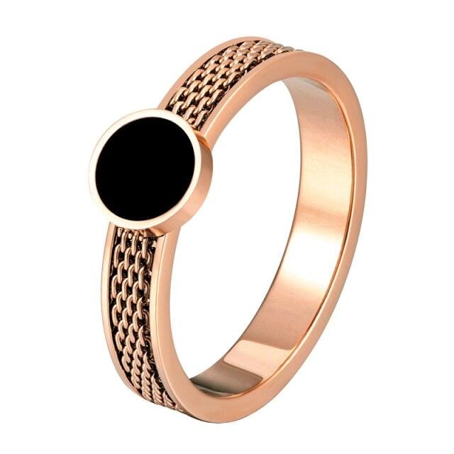 Exquisite Chain And Circle Black Acrylic Charm Ring High Quality Titanium Steel Gold Color Fashion Jewelry Gift For Woman
