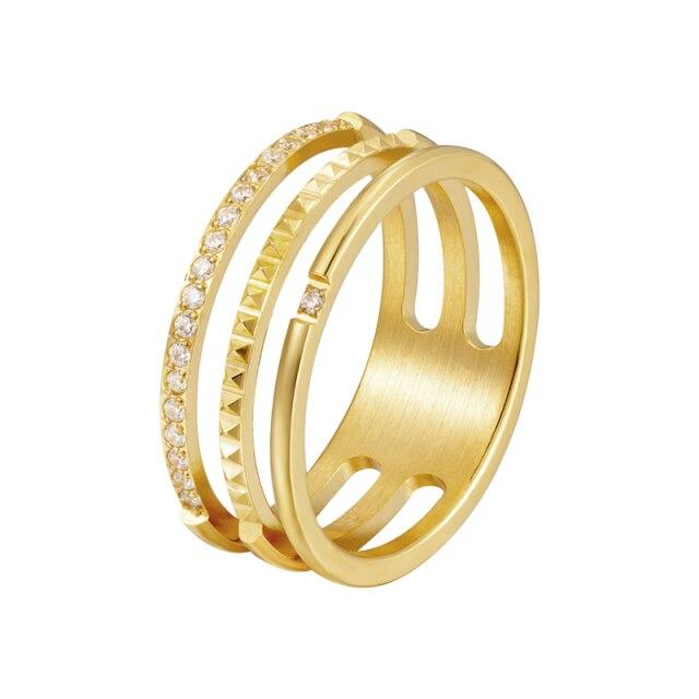 Exquisite Gear And Zircon Inlaid Triple Layer Ring High Quality Stainless Steel Fashion Jewelry Wholesale Ring For Women