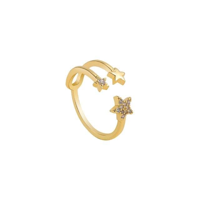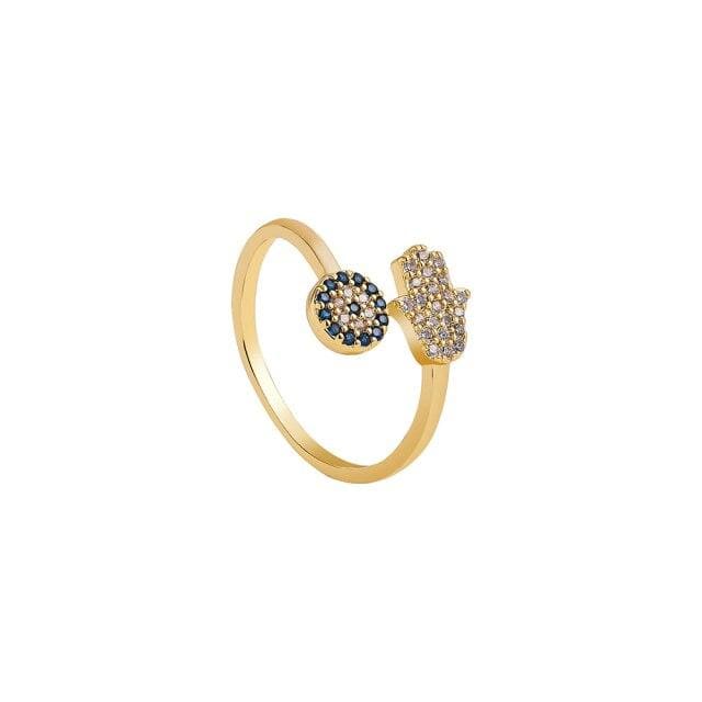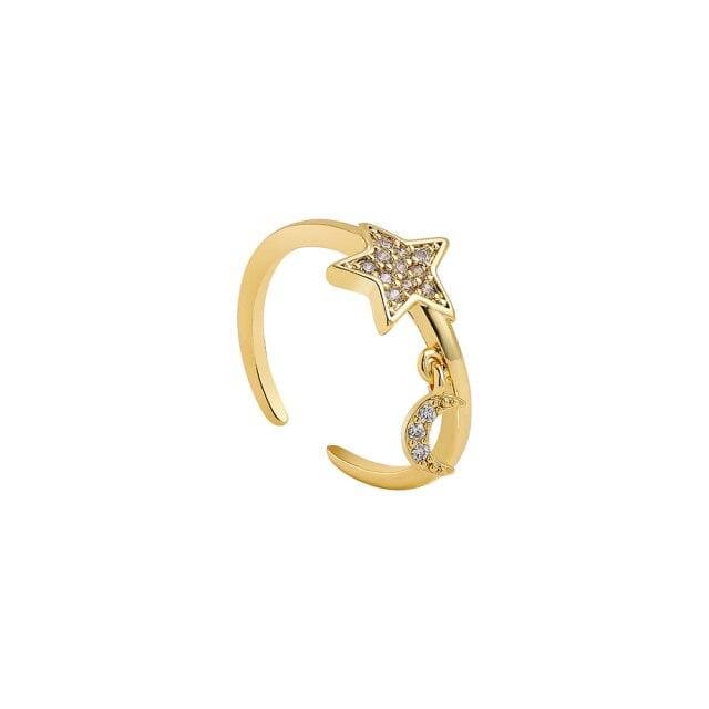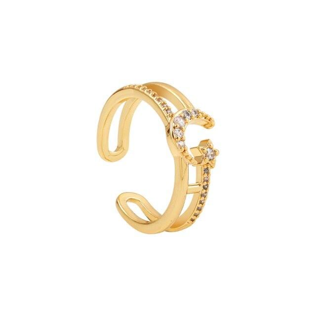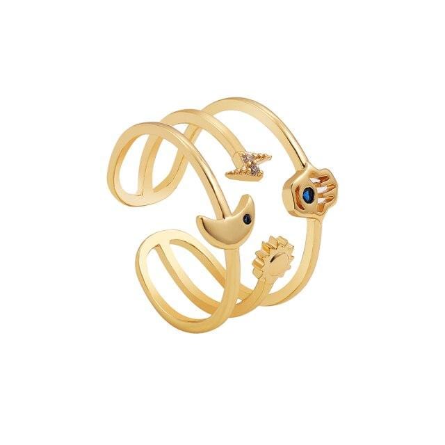 Gold Color Moon Star Hand Evil Eyes Opening Finger Ring for Women Charm Paved Cubic Zirconia Rings Luxury Wedding Jewelry Gift