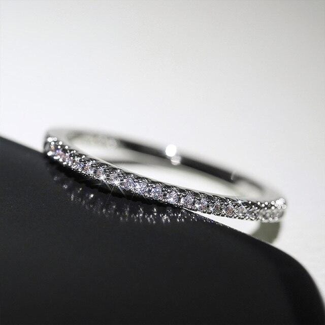 Huitan 3 Colors Simple Band Women Rings Shiny Cubic Zirconia Delicate Anniversary Gift Girl Accessories Hot Sale Fashion Jewelry