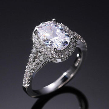 Huitan AAA Oval Shape Cubic Zirconia Women Finger Ring Silver Color Brilliant Accessories Engagement Wedding Band Trendy Jewelry