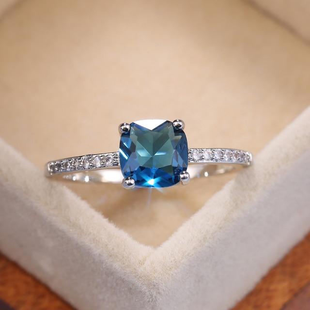 Huitan Blue Series Women Ring 4 Color Available Engagement Ring Jewelry Sliver Plated Simple Wedding Ring Anniversary Gift