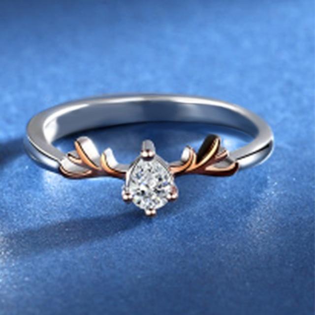 Huitan Cute Elk Antlers Couple Rings for Women/Men Simple Stylish Design Delicate Anniversary Gift Love Rings Statement Jewelry