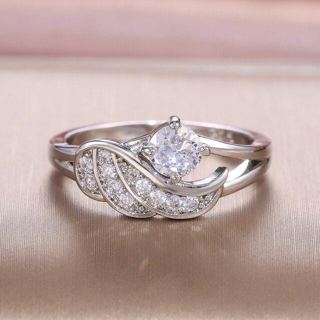 Huitan Elegant Wing Design Women Finger Rings Wedding Anniversary Delicate Gift Ring for Lover Brilliant Cubic Zirconia Jewelry